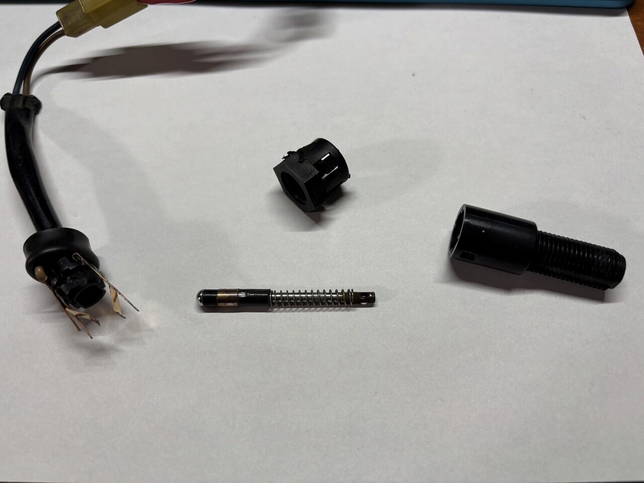 先ずはリアブレーキスイッチの動作確認。というか、固着。引っ張ってやっとスプリングフックのスライドが動いた。導通なし。そして分解。それほど汚れがあるわけでもなさそうだけれど接触不良。コンタクトスプレーがあったはずだけど見当たらず、無水エタノールで清掃。組み込み。導通は怪しいけれども使えそう。もう1回ばらした方がいいのかも。こういう時の導通はアナログテスターが分かり易い。