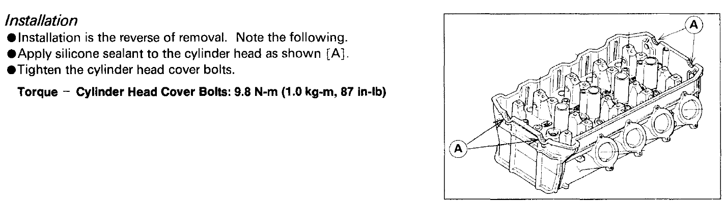ヘッドカバーガスケットの半月部には液状ガスケットを薄く。右側と左側、吸気排気の計4か所。
