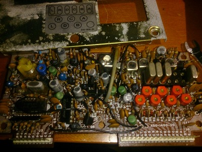 TR-7500 PLL UNIT 投稿日: 2015年9月10日2015年9月17日 投稿者: jg7sfrコメントする TR-7500のPLL_UNIT。カバーに貼り付けられたスポンジが湿気を帯びてしまうのでしょうか。本体フレームのメッキ部に白いものが付着しています。錆びでしょうか。クロメート処理の白錆。調べると絶縁物質のようです。周波数表示のLEDが点かない原因を調べていますがどうも問題はこの基板ではないような気が。ロータリースイッチの接触不良だろうか。