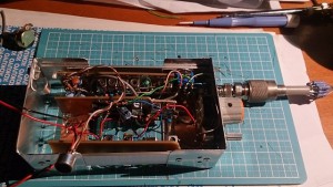 6mAMトランシーバ 投稿日: 2015年5月8日2015年8月25日 投稿者: jg7sfr2件のコメント 6mAMトランシーバは組立完成ではありますが、受信がいまいちです。送信は・・・・飛んでいるようです。それにしてもポリバリコン。発振周波数が不安定です。広い範囲を発振させたせいでしょうか。50.55での送信はバリコンに機械的な刺激を与えないと異常発振しています。上の周波数は正常。それにしても受信。いまいちですね。局発の信号が弱いので、もう少し同調回路を攻めてみます。それにしても、2連のポリバリコンを送受それぞれに使わせたこの回路、難しいです。