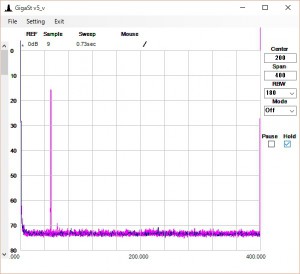更に続けると、ラジアル無しでスプリアスが消え、ラジアルを付けるとスプリアスが発生する場合もあり。アンテナ近くと私の存在が影響していたかも。出来るだけロッドアンテナから離れる必要があるかも。ラジアルが無い場合のスプリアスは最後の画像のように強烈なものとなってしまうようです。ただ、ラジアルを取り付けた場合のスプリアスはごく僅かの場合が殆どでした。ラジアルを取り付けたほうが良さそうというのが今回の実験の結果です。人工グランドとして、ラジアル線にバリコンを組み合わせ、その環境に応じて調整してもいいかもしれません。