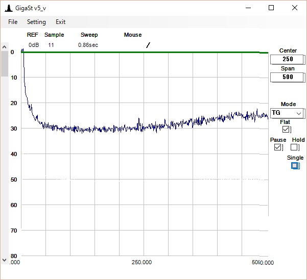自作したリターンロスブリッジを使用した今の環境下では、自作のダミーロードのほうが特性が良いようだ。中身は49.9Ωのチップ抵抗。もっと高価なダミーロードで試してみたい。