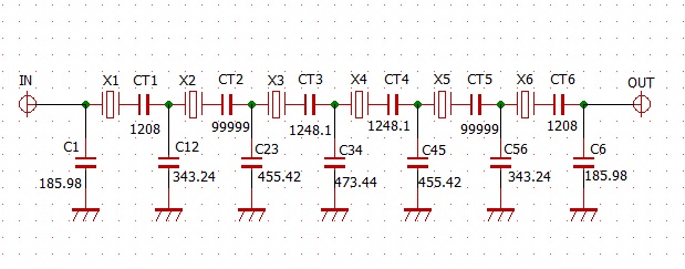 水晶フィルタの計算ソフトxlad08を使い定数を試験的に計算してみました。