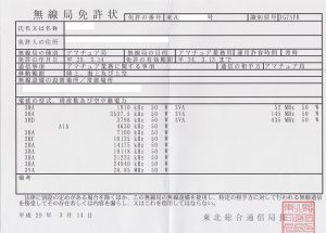 免許状到着 投稿日: 2017年3月16日2017年3月16日 投稿者: jg7sfrコメントする 免許状が到着しました。JG7SFRとJH1NOHの二通。 JG7SFRは免許の期限が切れてしまったため開設の申請。 JH1NOHは100Wの送信機とハンディ機の入替により移動範囲変更。 どちらの局も移動の範囲は陸上、海上及び上空。 近日中に、無効となってしまった交信を行った三郷市に行き、運用したいと思います。ご迷惑をお掛けしましたが、今後ともよろしくお願いいたします。 総務省のページに反映されるには1か月ほど掛かりますので、免許状の画像をアップします。