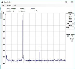 制御用マイコンを壊し、修復序に動作が不安定だった10mをブレッドボードで確認。原因は終段からのミスマッチかもしれない。コレクタ-GNDに15pFを追加して解決。基本波+高調波だけのキレイなスペクトルが得られ、T型のLPFを追加しキャリアに対しての高調波確認。-50dBc。基準クリア。高周波的に分離しようとチョークを追加したのも原因らしい。これで自信をもって基板を修正できる。