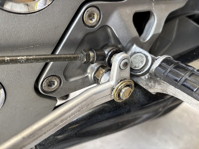 シフトペダルのグリスアップ。左右のロッドエンドはどういう状態だったのだろう。代わりの部品がないので、ブーツを脱がせグリスアップ。こういうときはスプレー式がいいけれども、残念ながらなかったので、リチウムグリスを細いドライバで充填。ペダルの支点軸も。ここで気付きました。エンジンのシフトチェンジ軸。軸方向にガタがありますね。ケースの内側に位置決めのカラーが入っているらしいのですが、前のオーナー様は何らかの理由でケースを開けたけれども、カラーを入れ忘れたか?クラッチを交換した?そうなるとやはりメーター1周した多走行距離車なのか?。シフトペダルを外さなくてもよかったのですが、シフトフィーリングに影響を与えそうだったので。こんな感じで、まだまだ手当てが必要な個所が多いのかもしれない。安定期はまだ先のようです。