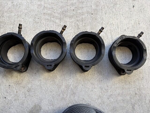 ただ、タンクとエアクリーナを外していなくて、車体の横からパーツクリーナーを吹いたので、2番3番には届いていなかったし、疑わしい箇所を確認できなかったので交換。社外品ですがまあ使えそうです。負圧を取るパイプが経路にはみ出しています。純正は凹んでいました。間違いなく流れに影響を与えそうです。でも仕方ない。