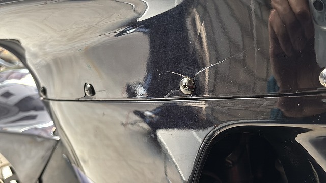 その後、、、カウルが割れていることに気付く。車庫の奥にバイクを押し込んでいるので、車の車庫入れの際にぶつけてしまったか?私?娘?まあ仕方ない。真剣にカウルの修復を考える必要がありそう。