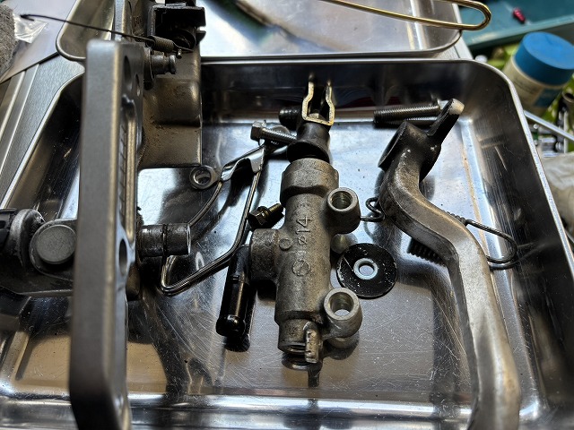 リアのマスターシリンダをオーバーホールして感じたこと。フロントブレーキやクラッチのマスターシリンダに比べて状態がいい。リザーブホースが多少硬化しているものの。オーバーホールを以前にしたことが有ったのか、それとも30年経っても状態がいいのかは不明。ブレーキの前後で頻度が違うだろうからなのか。温度によるものなのか。